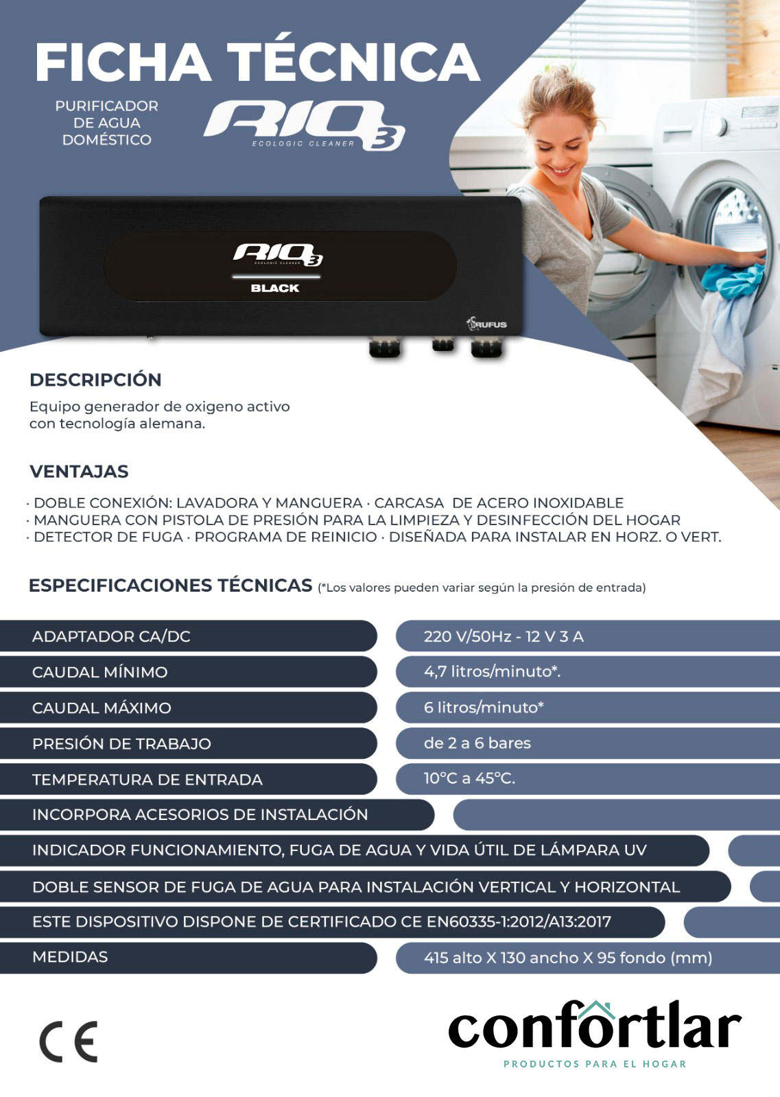 El sistema RIO3 genera e incorpora el oxígeno activo en el agua, convirtiéndola en desinfectante, desengrasante y desodorante. Dispone de una salida multiusos lo que te permite darle la usabilidad que más le convenga a tu hogar.